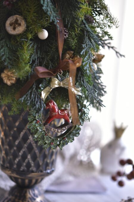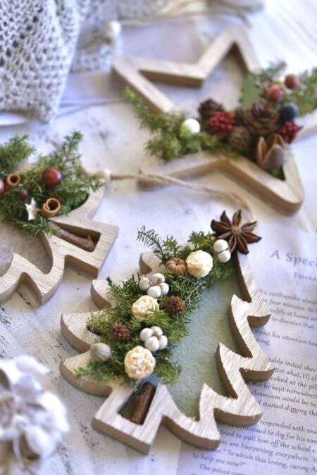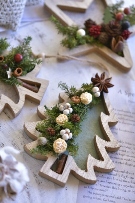 ここにこれを入れて、リボンはこれ、オーナメントはこれ。